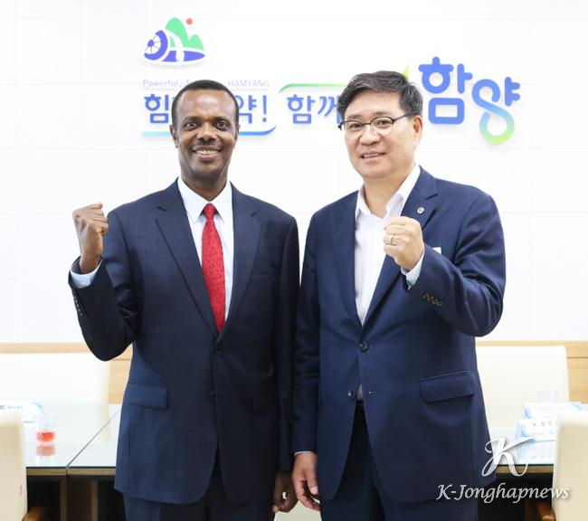 함양군은 8일 오후 데시 달키 두카모(Dessie Dalkie Dukamo) 주한 에티오피아 대사가 함양군을 방문해 미래 세대 교류를 통한 양국 간 우호 증진의 시간을 가졌다고 밝혔다.