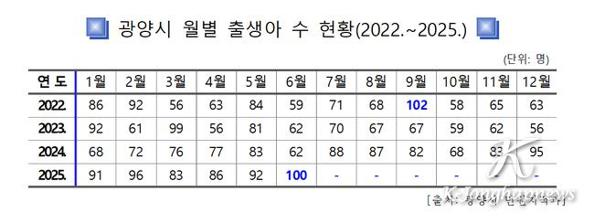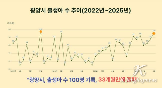 2025년 6월, 전남 광양시(시장 정인화)의 출생아 수가 33개월 만에 다시 세 자릿수 벽을 넘어섰다. 2022년 9월 이후 처음으로 월간 출생아 수가 100명을 넘어서며, 저출산 위기 속에서 이례적인 반등 사례로 주목받고 있다.