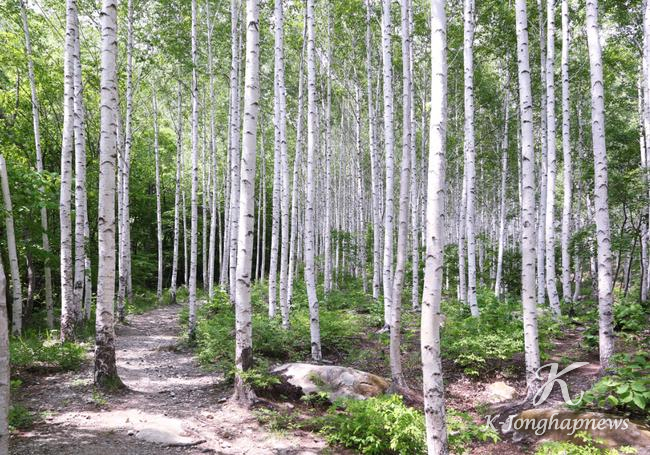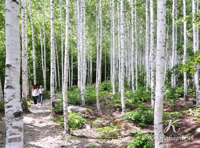 영양군청(군수 오도창)에서도 차로 40분을 더 들어가면 도착하는 수비면 죽파리 ‘영양 자작나무숲’ 입구, 전기차를 타고 맑게 흐르는 계곡을 지나면 하얗게 뻗은 기둥을 녹색으로 덧칠한 나무들이 빽빽하게 들어선 장관이 펼쳐지고 새들이 끊임없이 지저귀는 자작나무숲이 기다린다.