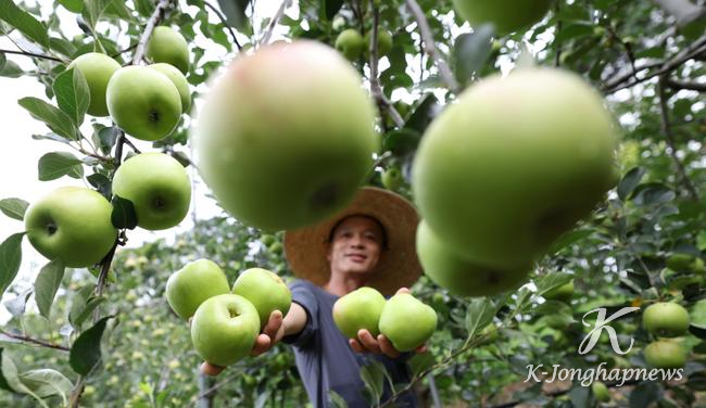 여름철 초록사과 ‘썸머킹’ 수확