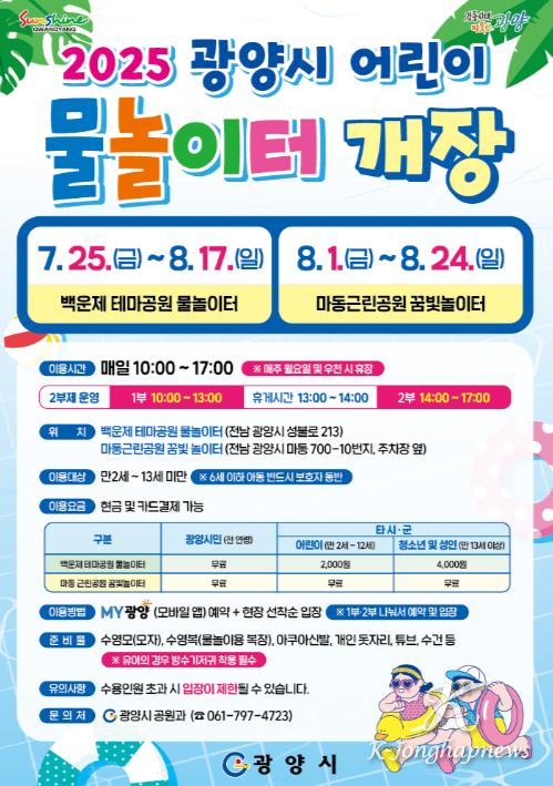 광양시, 어린이 물놀이터 7월 25일부터 본격 운영
