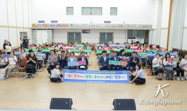 이후 ‘평생 살기 좋은 도시 광양 함께 만들어요’라는 메시지를 담은 퍼포먼스를 통해 인구문제 해결을 위한 공동 실천 의지를 확인했으며, 출생장려 표어 공모전 최우수작인 ‘기쁨은 출산에서, 행복은 육아에서, 해답은 광양에서!’라는 구호를 함께 외치며 행사를 마무리했다.