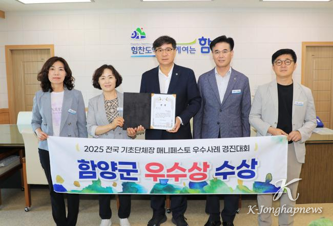 함양군이 지난 7월 23일부터 24일까지 경북 안동시 국립 경국대학교에서 열린 ‘2025 전국 기초단체장 매니페스토 우수사례 경진대회’에서 2년 연속 수상하는 영예를 안았다.
