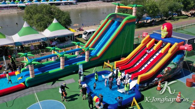 같은 공간의 ‘야외 어린이 물놀이장’은 에어바운스 풀장, 워터슬라이드, 차양막 쉼터 등으로 구성돼 어린이들의 필수 코스로 자리잡았다. 입장료는 3,000원이며, 하루 세 차례(10시, 14시, 16시) 운영된다. 각 회차 사이에는 수질 관리와 시설 점검을 위한 정비 시간이 마련돼 안전하고 쾌적한 물놀이 환경이 조성되고 있다.