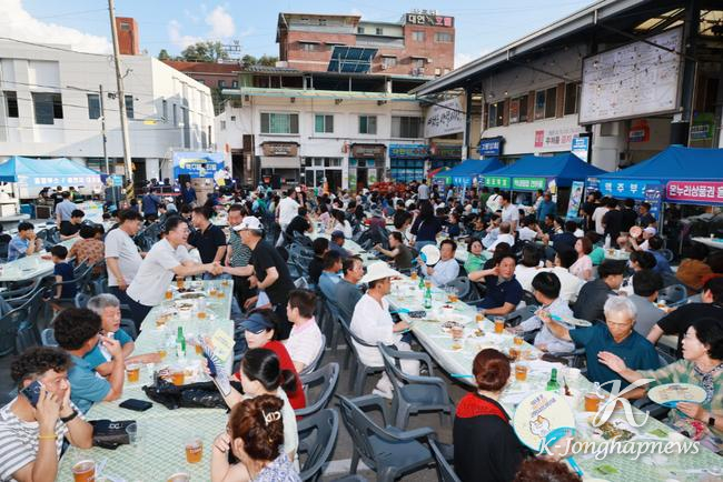 행사의 열기를 끌어올린 것은 곳곳에서 펼쳐진 참여형 이벤트였다. ‘수박 빨리 먹기’에서는 참가자들과 보는 이들이 함박웃음과 함께 환호했고, ‘맥주 브랜드 맞히기’와 ‘맥주병 큰소리로 따기’에서는 응원과 웃음이 뒤섞인 소리가 시장 안을 메웠다. 오후 5시부터 시작된 ‘천원 생맥주’ 판매는 순식간에 소진될 정도로 인기를 모았다.