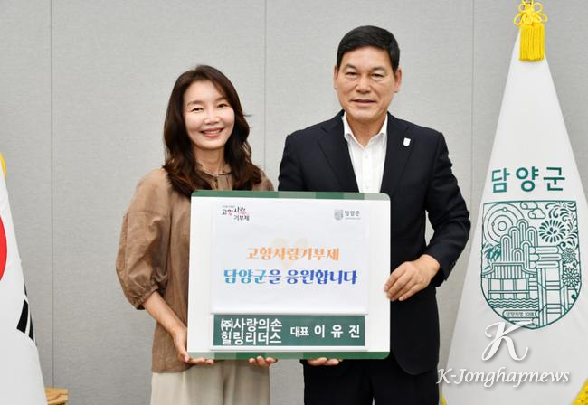 담양군(군수 정철원)은 지난 19일 이유진 사랑의 손 힐링리더스 대표가 고향사랑기부를 통해 담양에 따뜻한 마음을 전했다고 밝혔다.