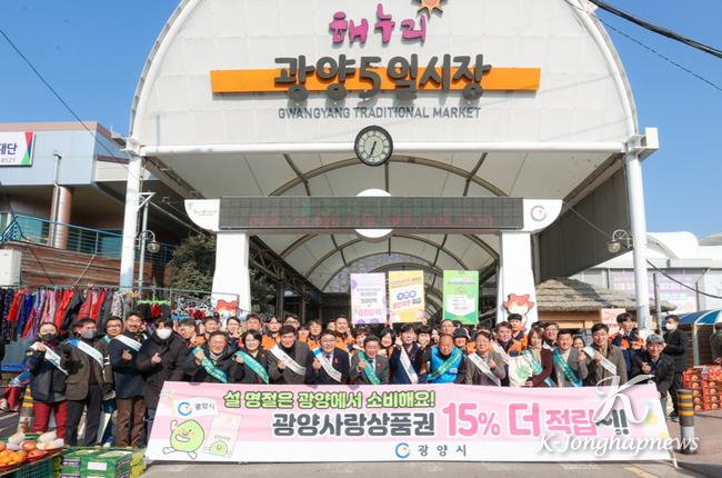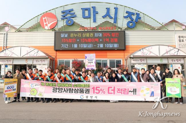가장 눈에 띄는 조치는 지역화폐인 ‘광양사랑상품권’의 대폭 확대 발행이다. 당초 500억 원 규모였던 상품권 발행액은 설 명절을 전후해 300억 원이 추가 발행돼 총 800억 원으로 확대됐고, 1월 13일부터 2월 12일까지는 결제 금액의 15%를 캐시백으로 돌려주는 소비 진작 이벤트도 병행됐다.
