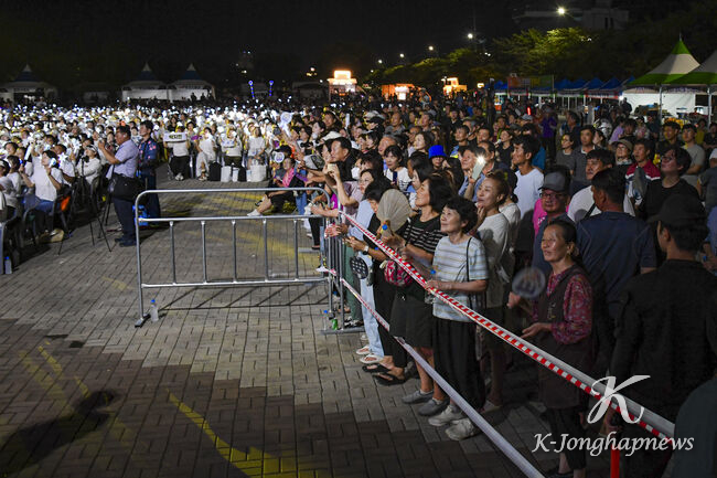 축하 공연으로는 제2회 문경트롯가요제 대상 수상자 윤진우, 인기상 수상자이자 문경홍보대사인 윤윤서, 현역가왕 우승자 전유진 그리고 트롯계의 슈퍼스타 박지현이 무대의 열기를 더했으며 특히 초청가수 팬클럽의 열띤 응원이 이어져 현장은 더욱 콘서트장을 방불케 했다.