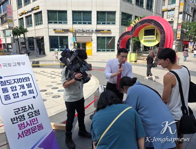 군포시의회 박상현 의원(국민의힘, 라선거구)은 8월 26일 오후 군포시 산본로데오거리에서 철도지하화 필요성을 알리기 위한 범시민 서명운동을 진행했다.