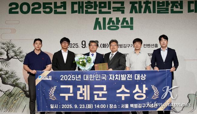 전남 구례군은 9월 23일 서울 백범김구기념관에서 열린 ‘2025년 대한민국 자치발전 대상’ 시상식에서 기초자치단체 부문 대상을 수상하는 영예를 안았다. 전남 지자체 중에서는 구례군이 유일하게 수상했다.