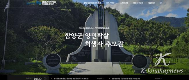 함양군은 한국전쟁 전후 억울하게 희생을 당한 함양 양민 희생자들을 온라인으로 추모할 수 있는 『함양군 양민학살 희생자 추모관』을 22일 개설했다고 밝혔다.