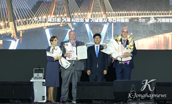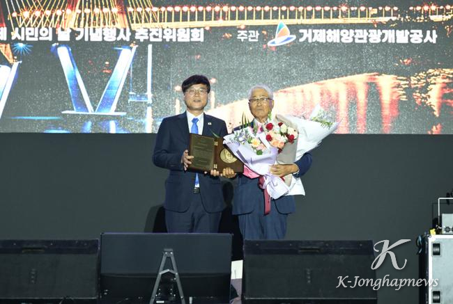 저녁 시간 열린 기념식에서는 시민의 날을 맞아 거제시민상과 명예시민상 시상식이 진행됐다. 시민상은 산업경제 지역개발 부문 이정태 대일수산(주) 대표이사가 수상했으며, 명예시민상은 콘스탄틴 루시안 코르니츅(Constantin Lucian Corniciuc), 라이트 주니어 제임스 유진(Wright JR James Eugene)이 수상했다.