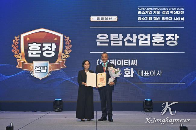 경상남도 함양군 휴천면 출신 향우인 박찬화 ㈜유아이엘 및 ㈜케이티씨 대표이사가 지난 9월 4일 제주에서 열린 ‘2025 중소기업 기술·경영혁신대전’에서 품질 혁신 부문 은탑산업훈장을 수상했다.