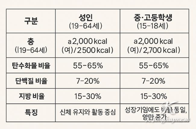 하지만 이 기준이 성장기 학생의 실제 필요와 맞을까 하는 의문이 제기되어 오고 있다. 어른과 성장기 아이의 영양은 달라야 하나 똑같이 적용하는데 문제가 있다. 다 큰 어른은 효율을 높이는 채소·나물이 중심이어야 하지만, 근육과 뼈가 폭발적으로 성장하는 아이들은 그 재료인 단백질이 훨씬 더 필요하다.