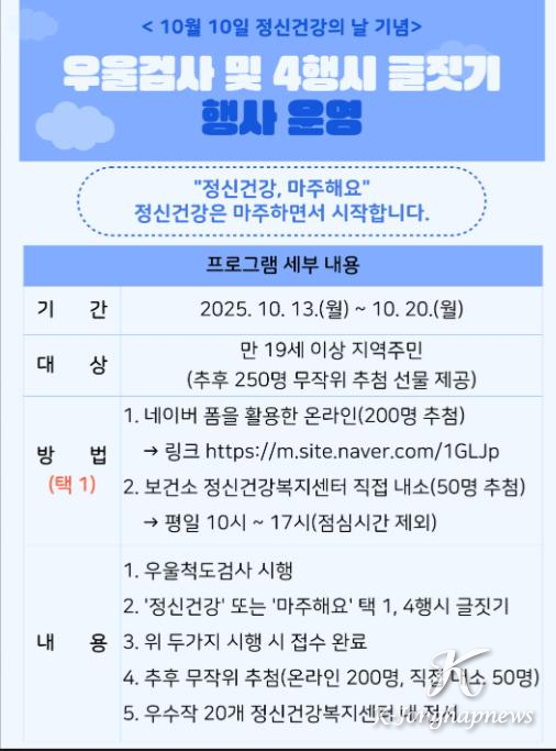 • 정신건강의 날 기념, 지역 주민 대상 우울 검사·4행시 글짓기 행사 운영