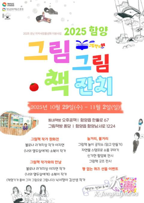 함양의 독립서점 오후공책(대표 조영선)과 그림책방 퐁당(대표 유희정)이 공동으로 준비한 그림책 축제 '그림그림 책잔치'가 10월 29일(수)부터 11월 2일(일)까지 열린다.