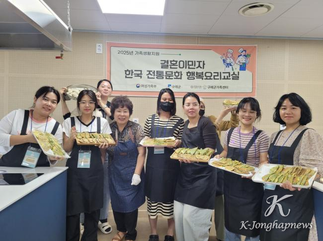 구례군가족센터(센터장 박미연)는 지난 10월 1일(수) 구례행복가족복합센터 2층 공유 부엌에서 결혼이민자 8명을 대상으로 ‘2025년 한국 전통문화 행복요리교실’을 진행했다.