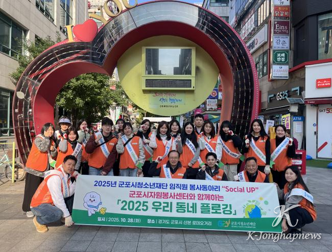 군포시청소년재단(대표이사 김덕희)은 지난 10월 28일(화), 재단 임직원봉사단 30여 명이 참여한 가운데 군포시자원봉사센터와 함께 ‘2025 우리동네 플로깅’ 봉사활동을 성공적으로 진행했다고 밝혔다.